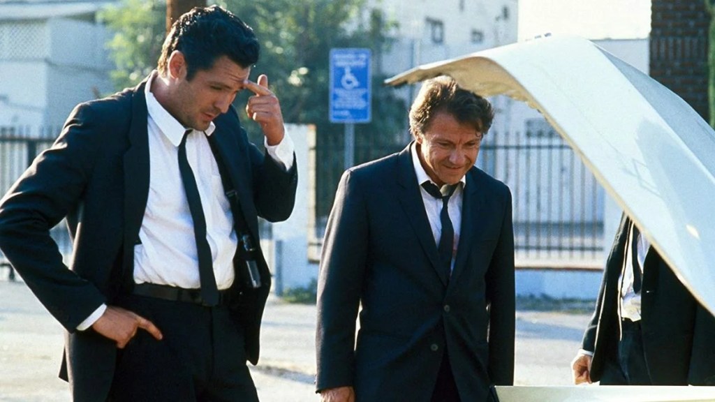 "Reservoir Dogs," film garapan sutradara Quentin Tarantino yang pertama kali dipublikasikan secara panjang, di mana ia juga berperan, mengikuti enam kriminal yang saling tidak kenal, tetapi ditugaskan untuk bekerja sama dalam melakukan perampokan. Namun ketika misi tersebut menjadi terganggu oleh kehadiran polisi, geng tersebut harus mencari cara untuk keluar dari masalah tersebut. Dan ketika mereka yang selamat menyadari bahwa seseorang telah menjebak mereka, mereka berkumpul lagi untuk menemukan pelaku tersebut.